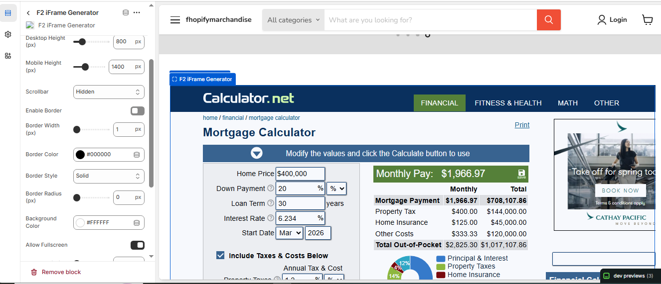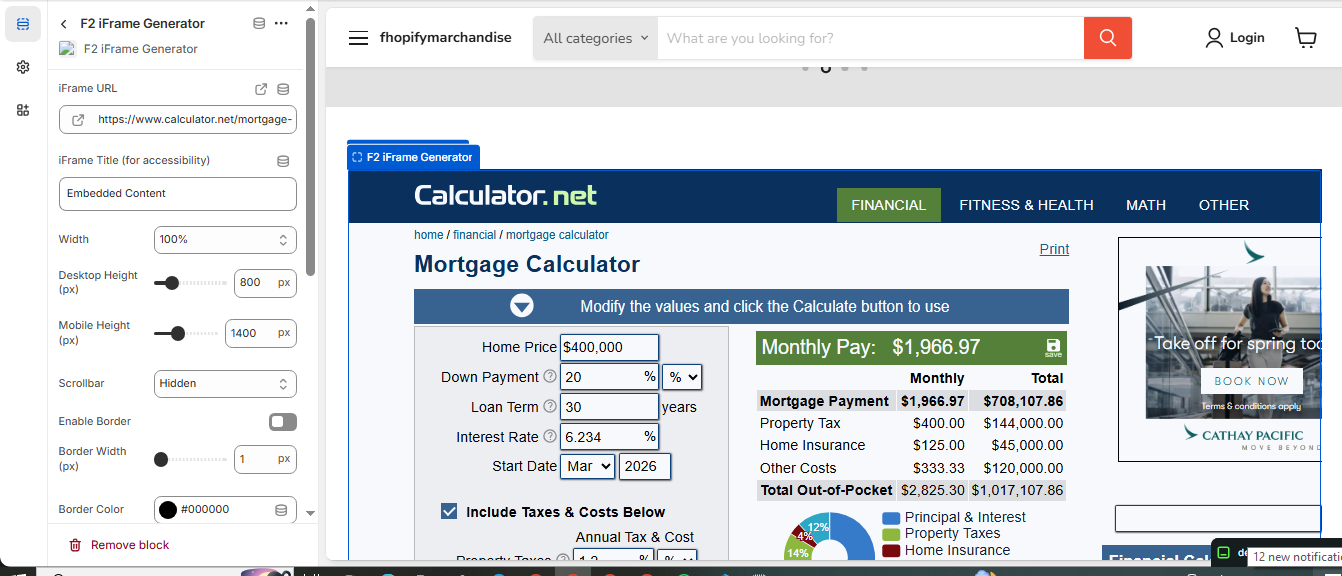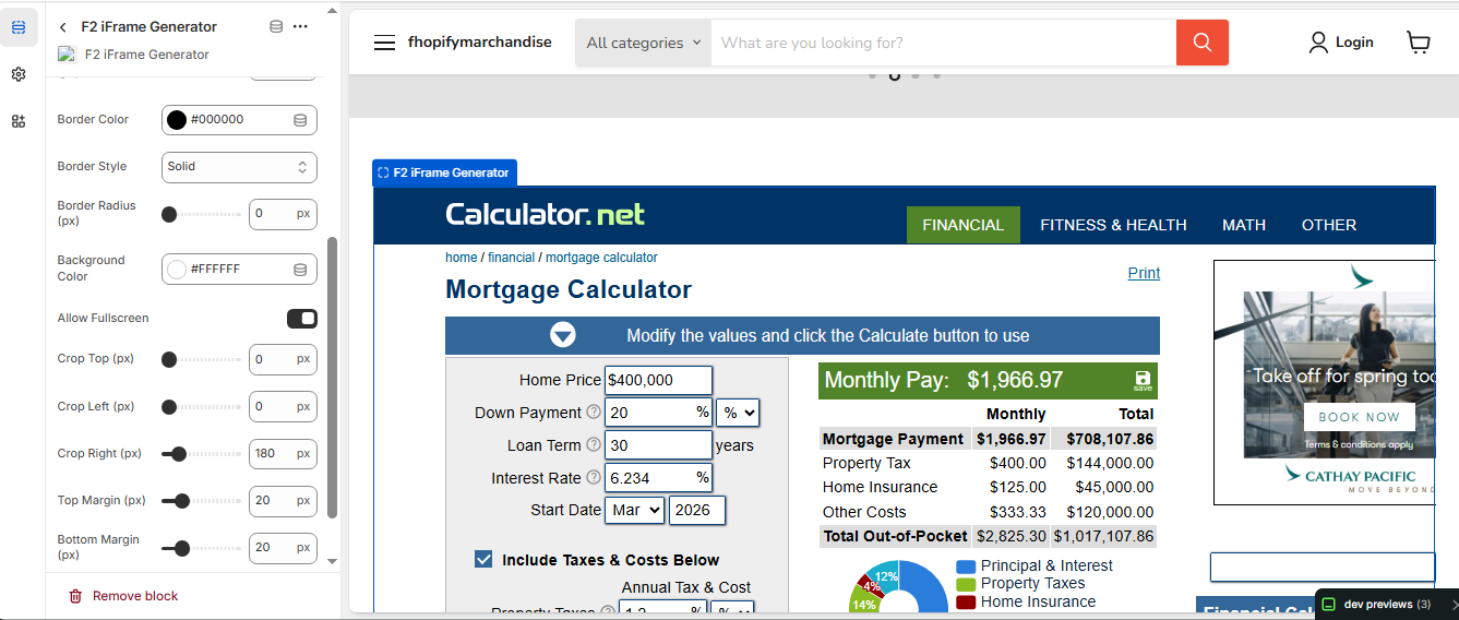 F2 Iframe Generator lets Shopify merchants embed external websites, tools, widgets, or dashboards directly inside their store using a responsive iframe block. Add the block from the Shopify theme editor, paste the URL, and customize width, desktop/mobile height, borders, margins, and fullscreen settings. Advanced crop controls allow merchants to remove unwanted parts of the embedded page by trimming the top, left, or right areas, making external content fit perfectly inside Shopify pages without coding.