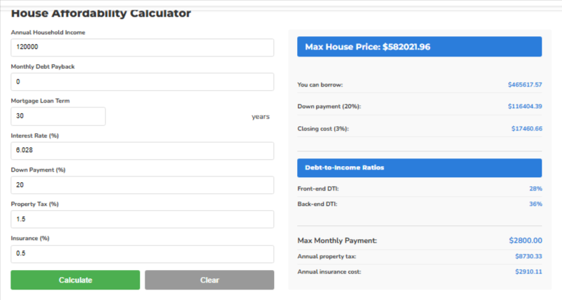 House Affordability Calculator – See how much home buyers can afford.