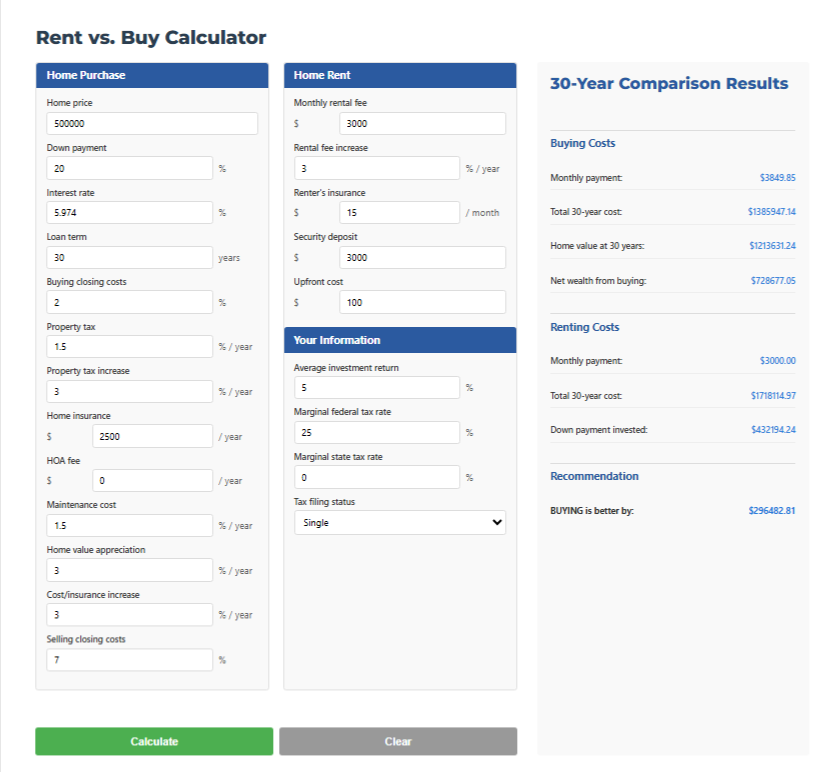 Rent vs Buy Calculator – Compare long-term renting vs buying costs.
