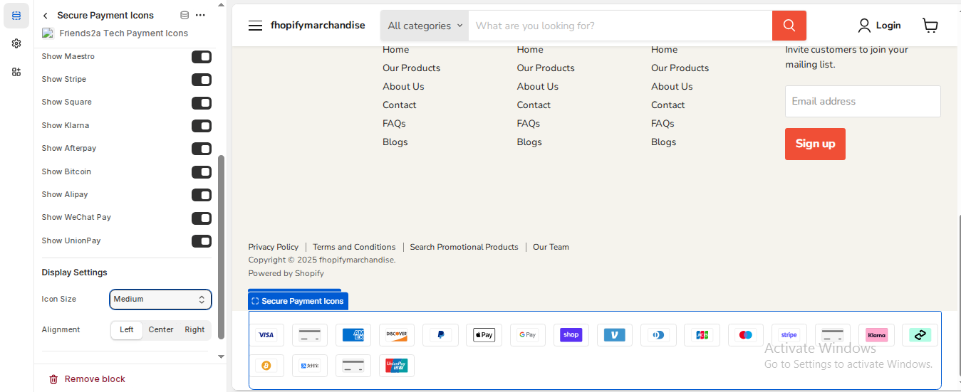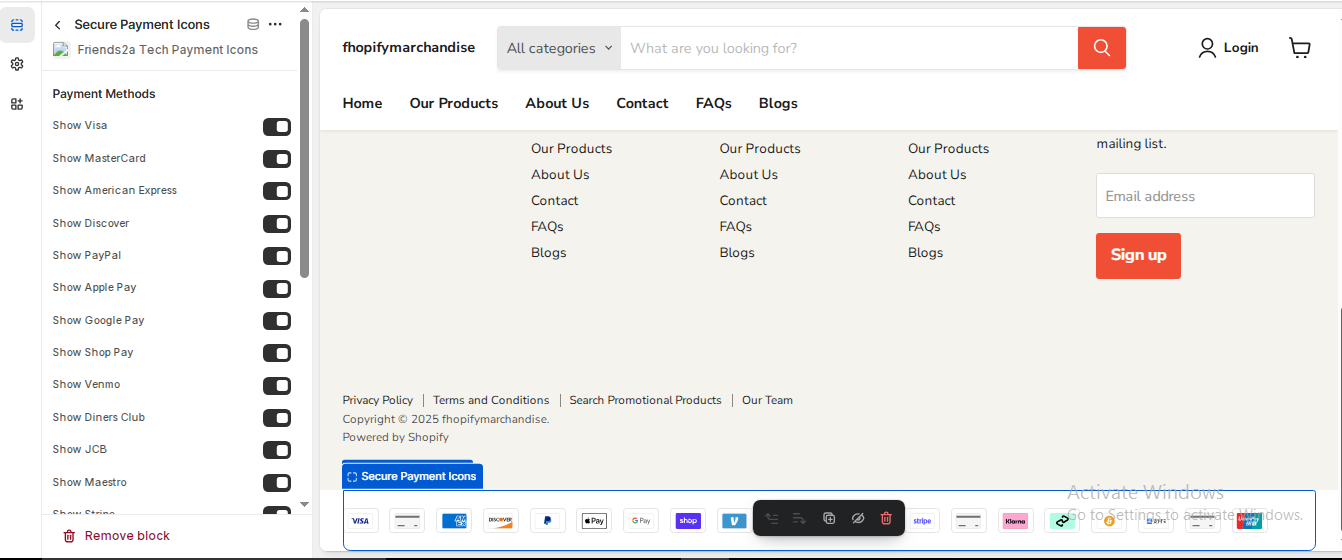 ⦁ Hide Footer Text/Links: Toggle on for a clean look (if available).