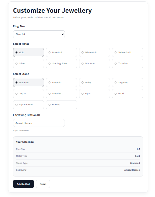 Friends2a Jewellery Finder helps jewelry stores create advanced product filtering using Shopify navigation. Easily build multi-level dropdowns for product type, material, and price range to improve product discovery and user experience. Customers can quickly find rings, bracelets, and other jewelry items within specific criteria. Fully compatible with Online Store 2.0 and customizable without coding.