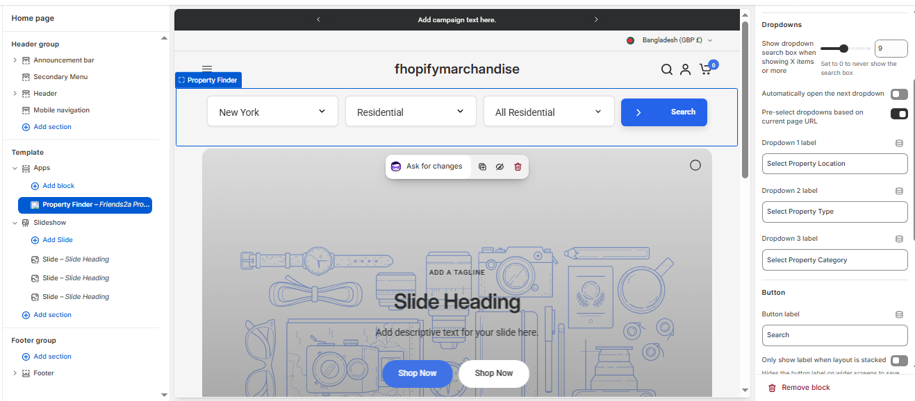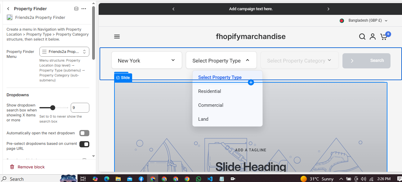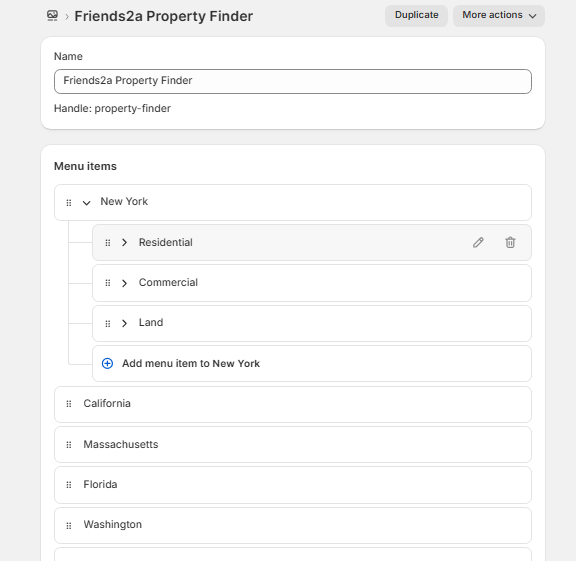 Friends2a Property Finder is a Shopify app built for real estate and property listing stores. It lets merchants create structured search filters using navigation menus such as Location, Property Type, and Property Category. Customers can quickly find properties using multi-level dropdown filters and get redirected to the correct listing page. Ideal for real estate agencies, property marketplaces, and location-based stores.