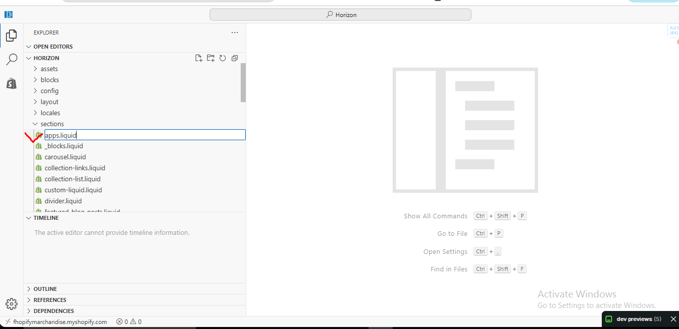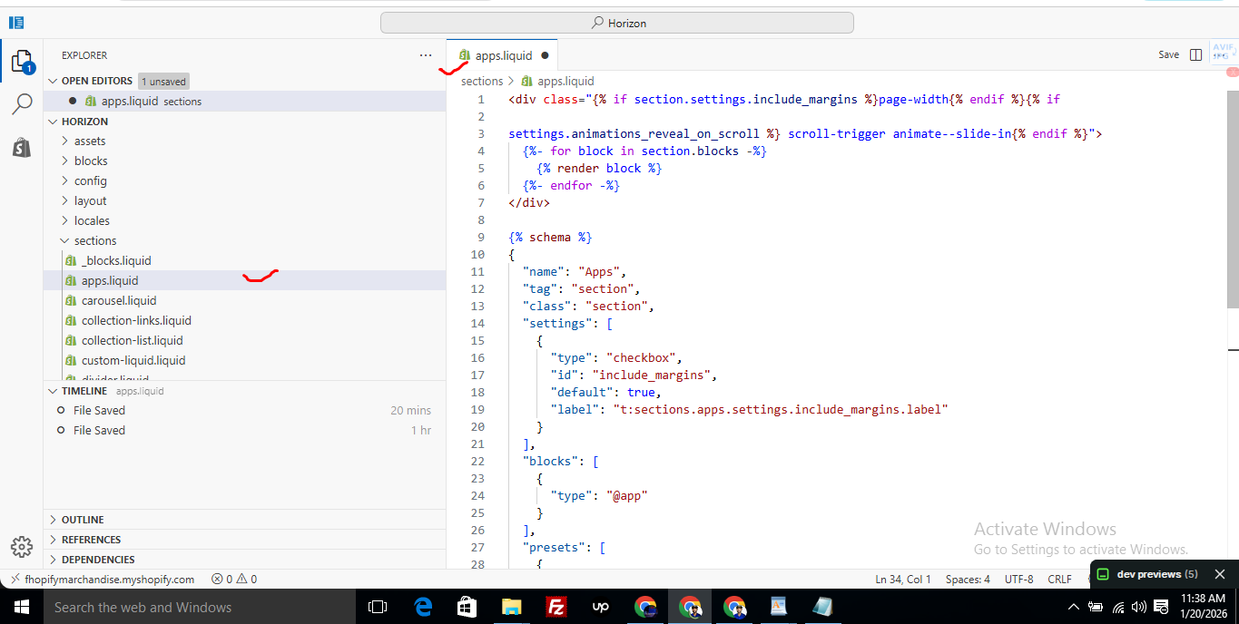 – If the file does not exist, create a new file named apps.liquid and paste the code into it